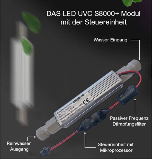 •  2 x UVC LED 275nm Tiefenentkeimung im Durchflussprinzip